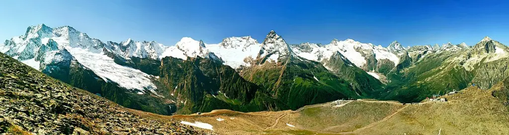 - Финиш: Домбай (автобус/трансфер до Минвод или обратно в Сочи).