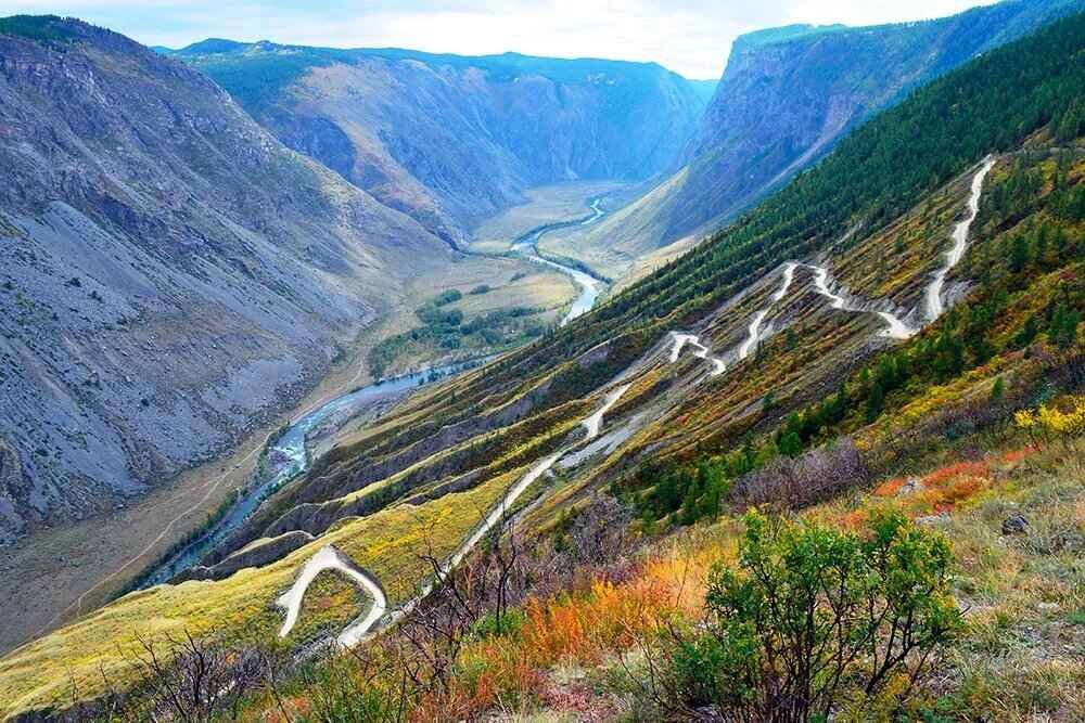 • Бийск/Горно‑Алтайск — Чемал — Онгудай — Акташ. Асфальт + грейдер, перевалы 1 200–1 800 м.