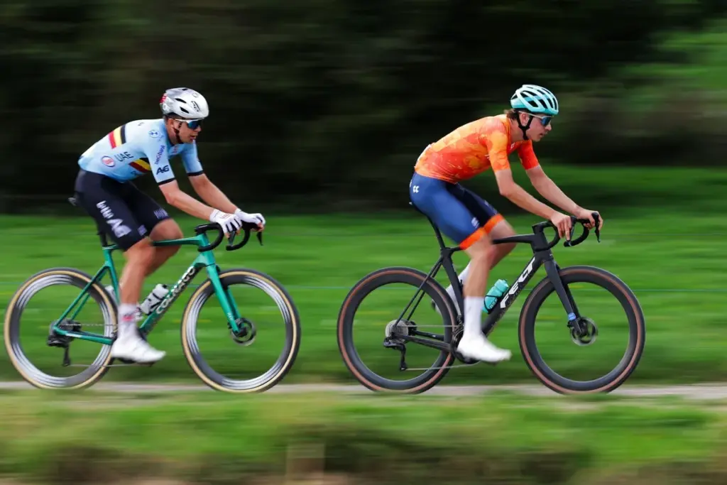 История чемпионатов коротка, но уже с характером: Джанни Вермеерш (2022), Матеј Мохорич (2023) и Матьё ван дер Пул (2024) — бывшие и действующие «роуд»-звери, перекрасившие шоссейную мощь под гравийную геометрию. В 2025-м радужка снова ушла «шоссеру».