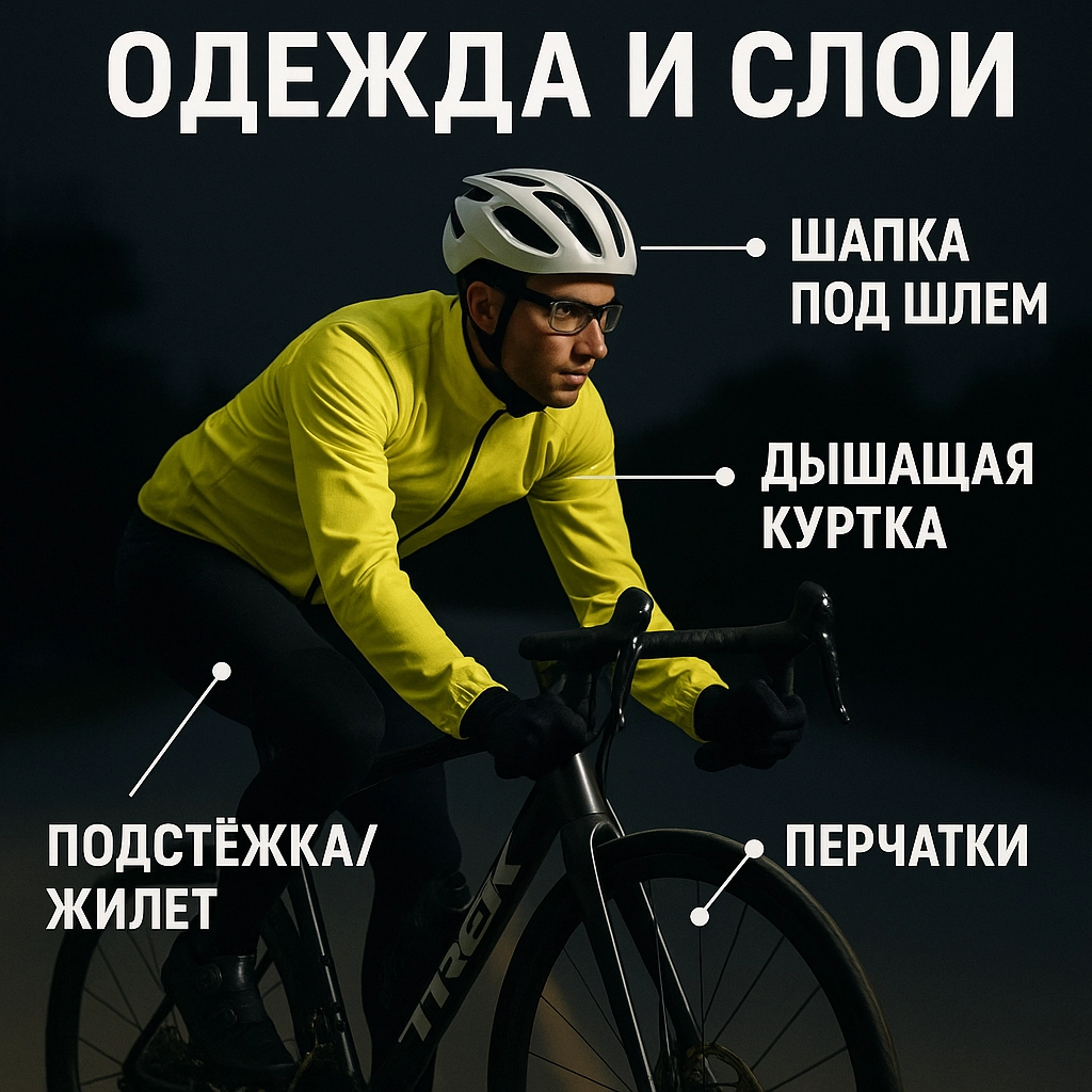 - Каденс-дрили (100–110 rpm) — повышают «контроль велосипеда» в стрессе ограниченной видимости.