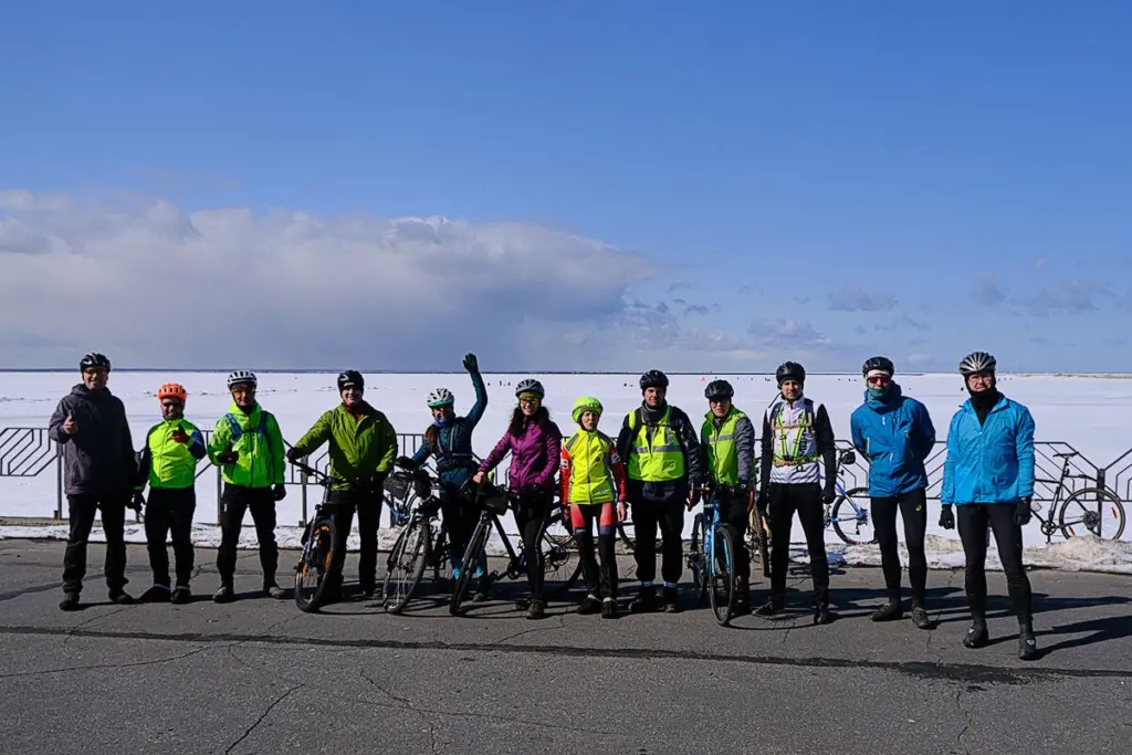 Подойдёт велосипед: MTB/грэвел 40–50 мм. Обязательна защита от ветра и дождя.