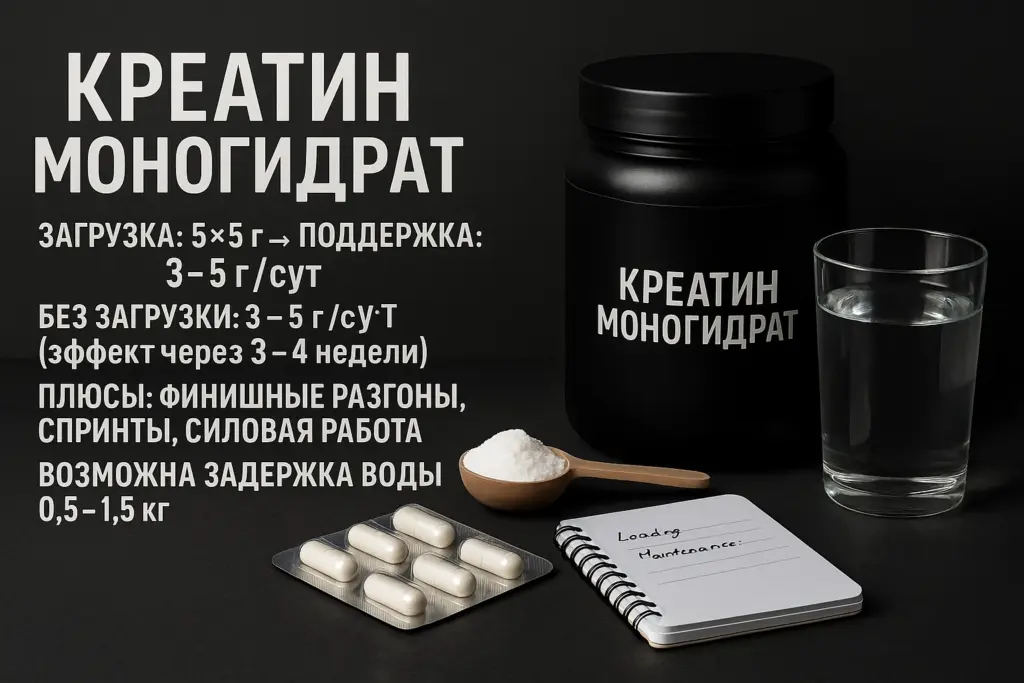 - Схема 2: без загрузки 3–5 г/сут на постоянке — эффекты накапливаются за 3–4 недели.